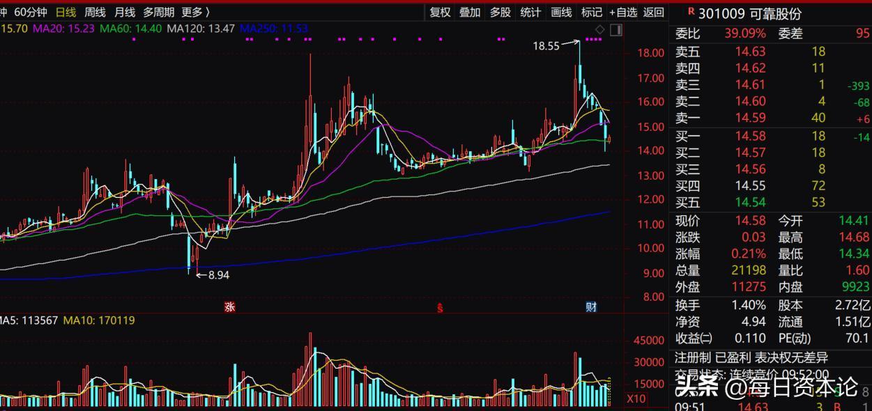 2021年6月17日,可靠股份迎来高光技艺,得手在深交所创业板挂牌上市,刊行价为12.54元/股,股票刊行召募资金总数为8.52亿元。上市今日,公司市值一度达到103.9亿元,成为备受瞩计算“成东说念主失禁督察第一股”。