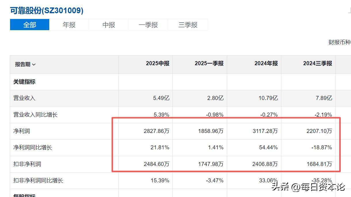 与此同期,可靠股份的筹算事迹呈现出复杂的场面。2025年上半年,公司杀青贸易总收入5.49亿元,同比增长5.39%;归母净利润2827.86万元,同比增长21.81%。公司盈利智力有所改善,净利率从2024年上半年的4.49%晋升至5.21%,提高了0.72个百分点;毛利率也从21.93%晋升至23.96%,增长了2.03个百分点。