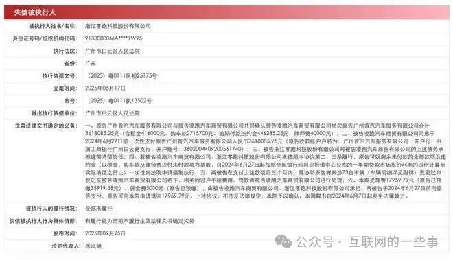 此次事件启事于一皆左券纠纷。字据中国推行信息公开网的信息,9月25日,广州市白云区东说念主民法院将浙江零跑科技股份有限公司过火全资子公司凌跑汽车商贸有限公司列为失信被推行东说念主。朱江明本东说念主也因此被限定高糟塌。